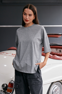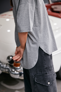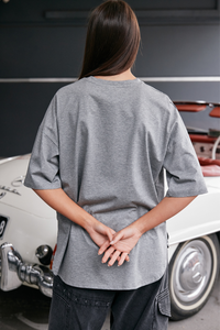 Discover the endless possibilities of the M.A.Dainty Peony Top in Grey Marle. Add a touch of timeless style to any outfit by pairing it with jeans, or simply lounge around in comfort with your favorite tracksuit. This top boasts a relaxed fit, round neckline, and curved hem for optimal versatility.