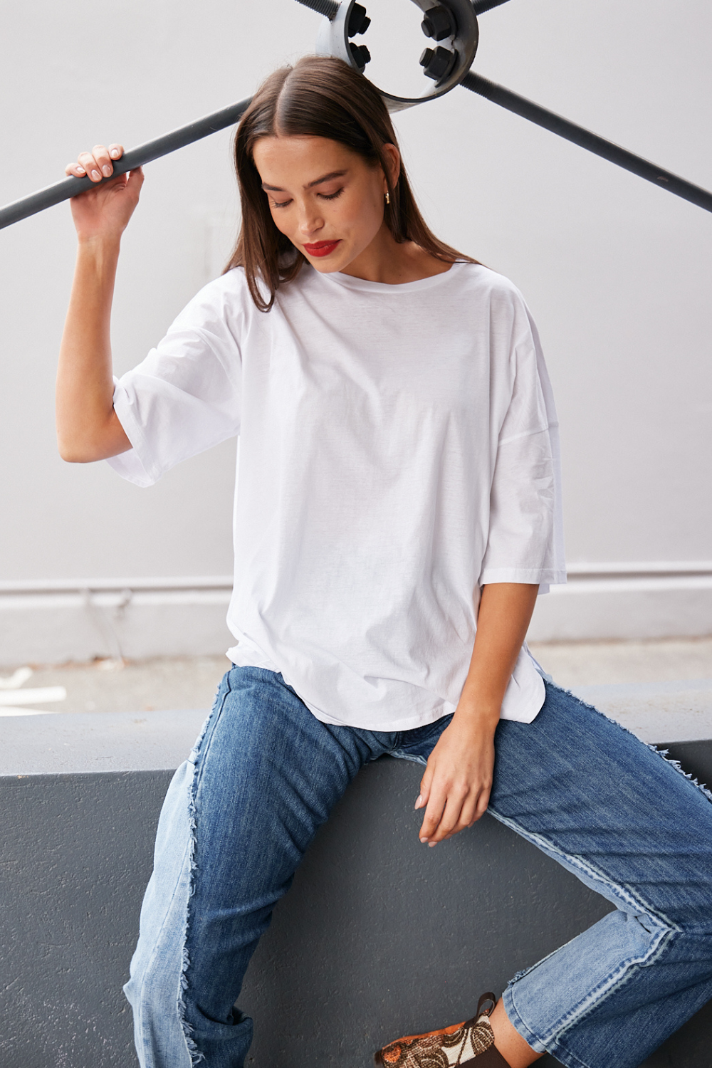 Discover the endless possibilities of the M.A.Dainty Peony Top in White. Add a touch of timeless style to any outfit by pairing it with jeans, or simply lounge around in comfort with your favorite tracksuit. This top boasts a relaxed fit, round neckline, and curved hem for optimal versatility.