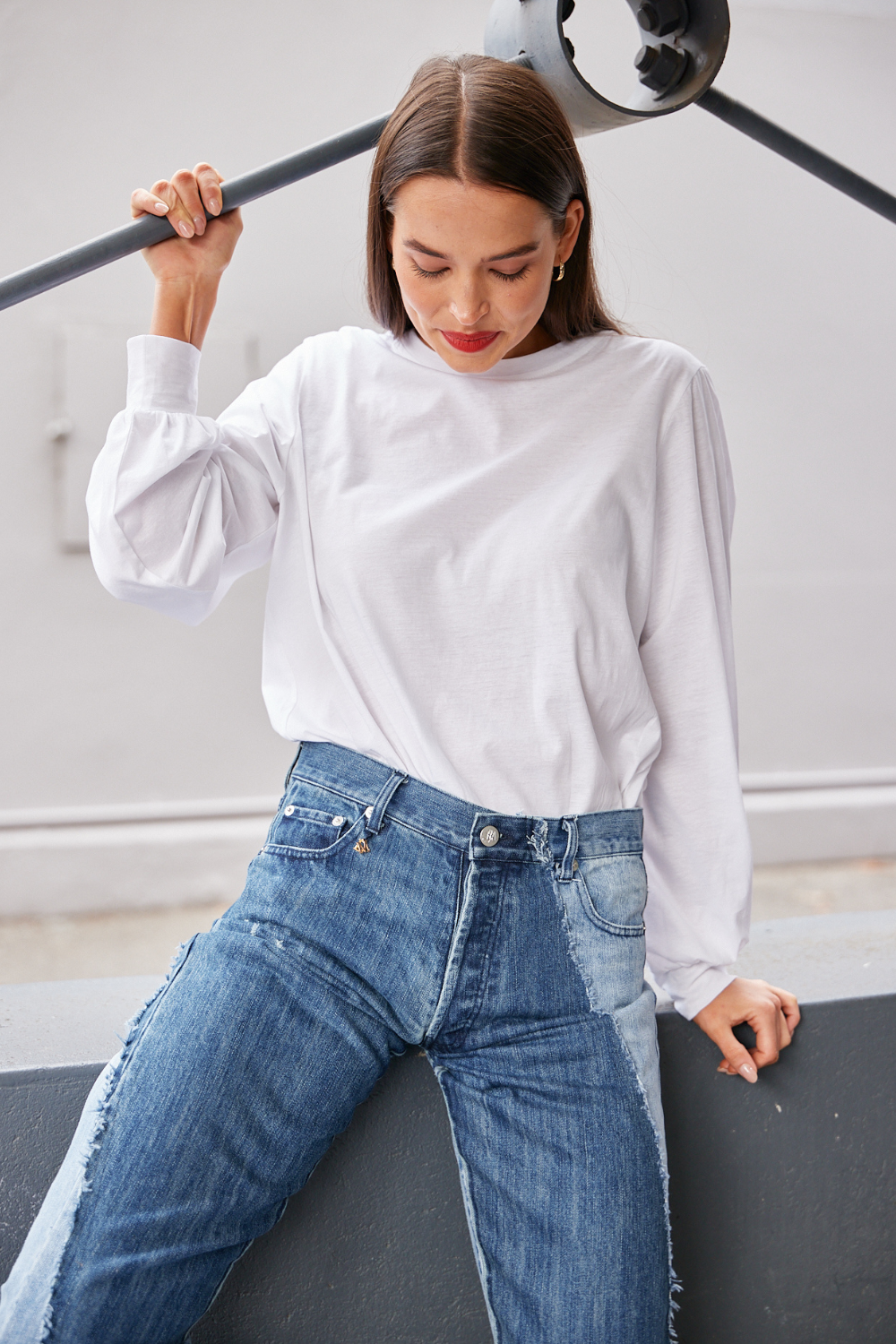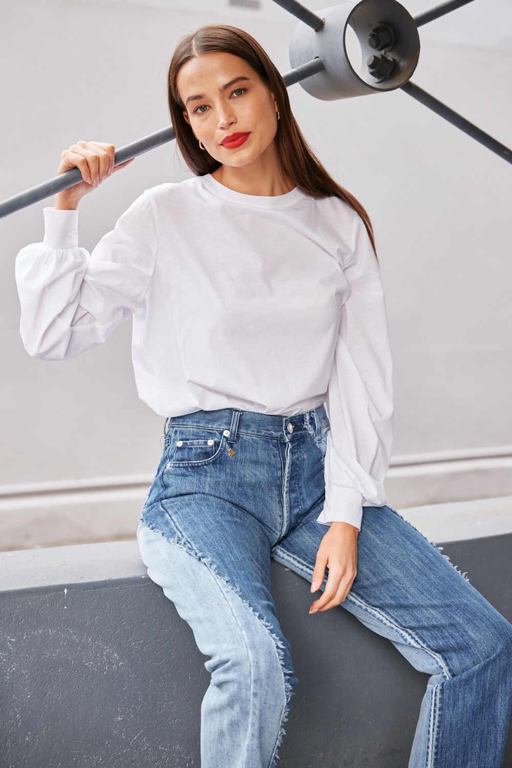 The M.A.Dainty Baxter Top in White is a must-have addition to your wardrobe. Made from ultra-soft cotton jersey, this long-sleeve tee is perfect for transitioning between seasons and layering with ease. Featuring long balloon sleeves, a timeless crew neckline, and a shaped hem, this top offers a comfortable yet stylish look you'll reach for again and again.