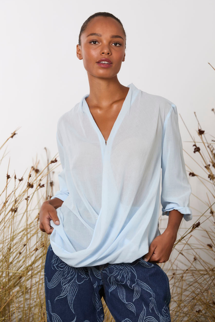 M.A.Dainty Celebrations Shirt Blue Brown Retro