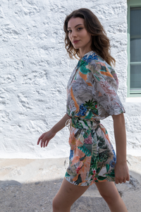 The Andrea Short by Kachel is a fun playful short for the summer Matching with the Carla Shirt, this shorts features a drawstring cord and an elastic waistband making it easy and feel comfortable. Matching print with the Carla shirt it draws people attention for all the good reasons.