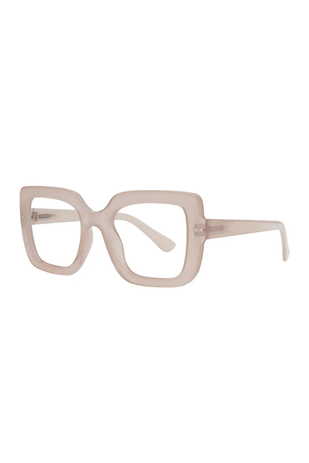 Make a bold statement with Aria - where style meets function. Featuring a chunky square frame with extended corners and a high-gloss beige finish, these glasses are equal parts refined and daring. Made entirely from lightweight polycarbonate with built-in blue light protection, Aria keeps your look sharp and your eyes comfortable.