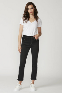 A five-pocket mid-rise jean in a super stretchy denim featuring contrast embroidered stitching around pocket openings and our signature stretch waist construction for superior fit and comfort.